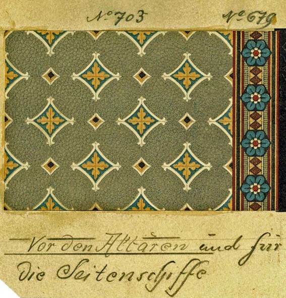 12 Musterblatt für die Mosaikplatten Nr. 703 und Fries Nr. 679 in den Seitenschiffen im Stiftsarchiv