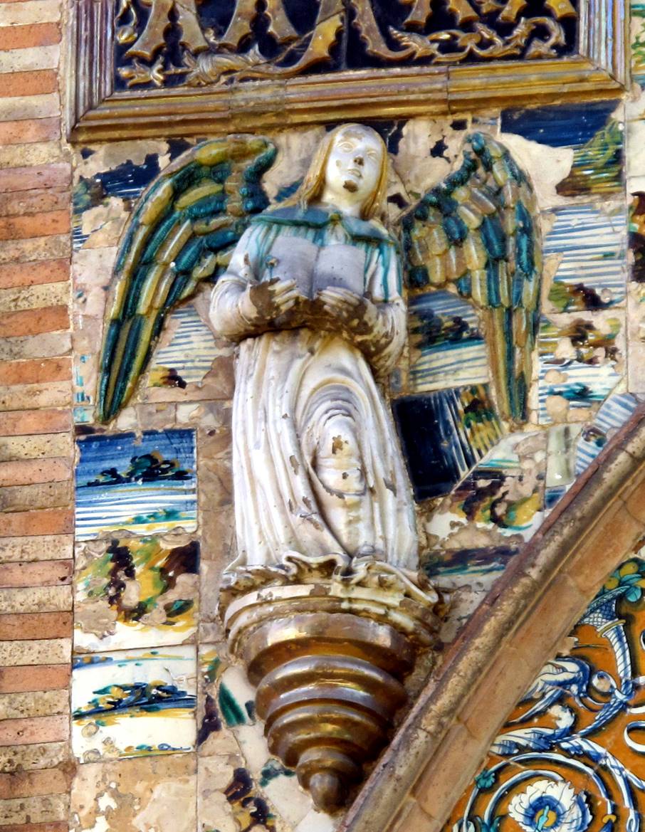 Millán modellierter Engel mit Buch am Portal der Klosterkirche Santa Paula